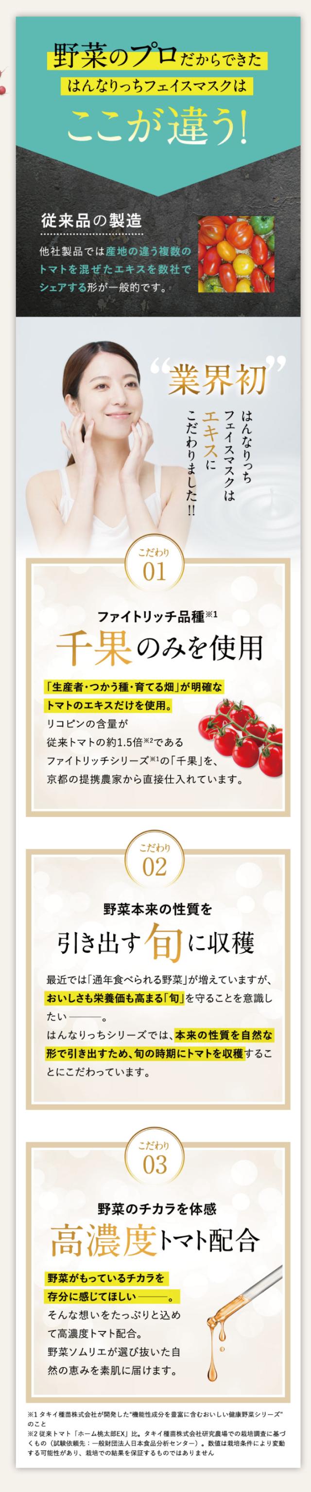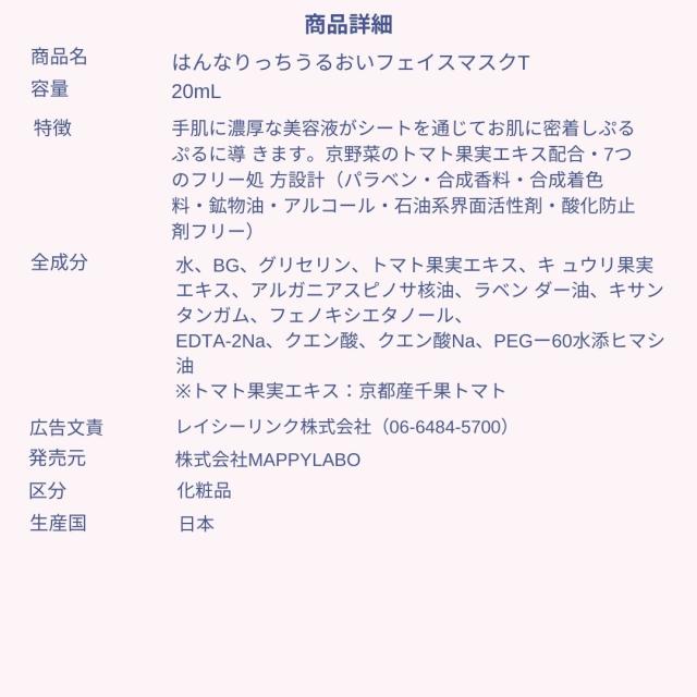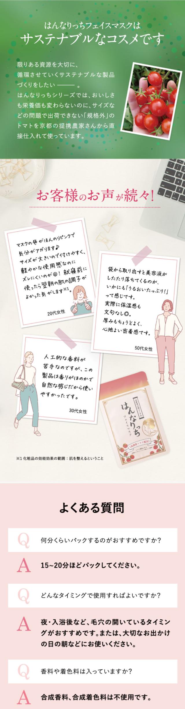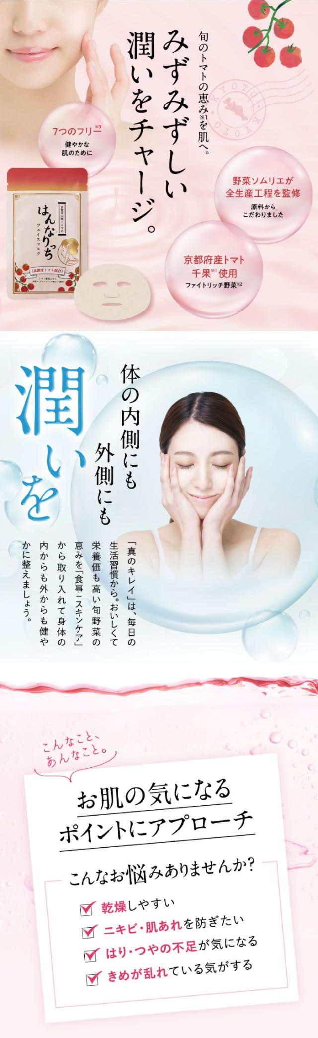 はんなりっち フェイスマスク1枚 トマトエキス配合 パック 美容 とまと シートマスク フェイスマスク フェイスパック 7つのフリーで日本製 正規品