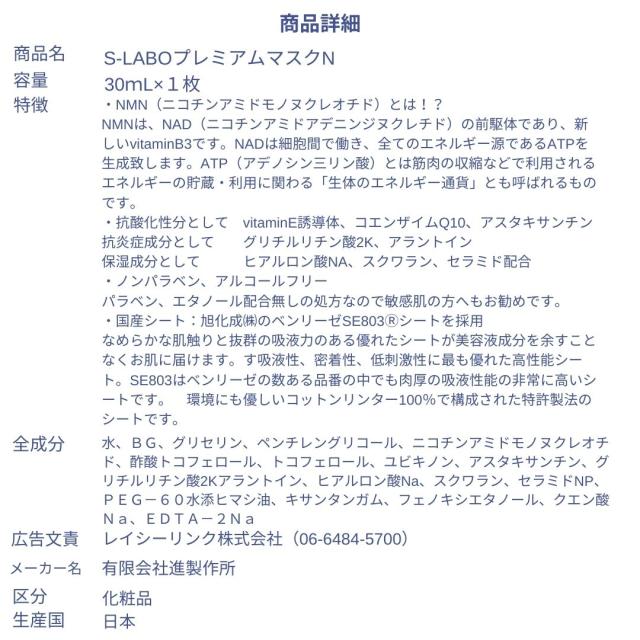 S-LABO NMN プレミアムケアマスク フェイスマスク30mL×1枚