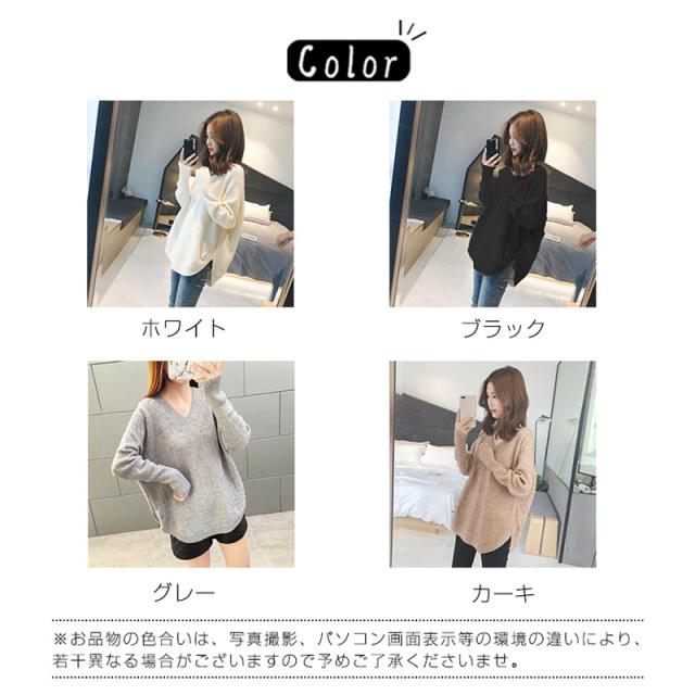 ニットセーター レディース ニットカットソー 長袖 インナー トップス セーター Vネック ゆったり スリット あったか 秋物 シ