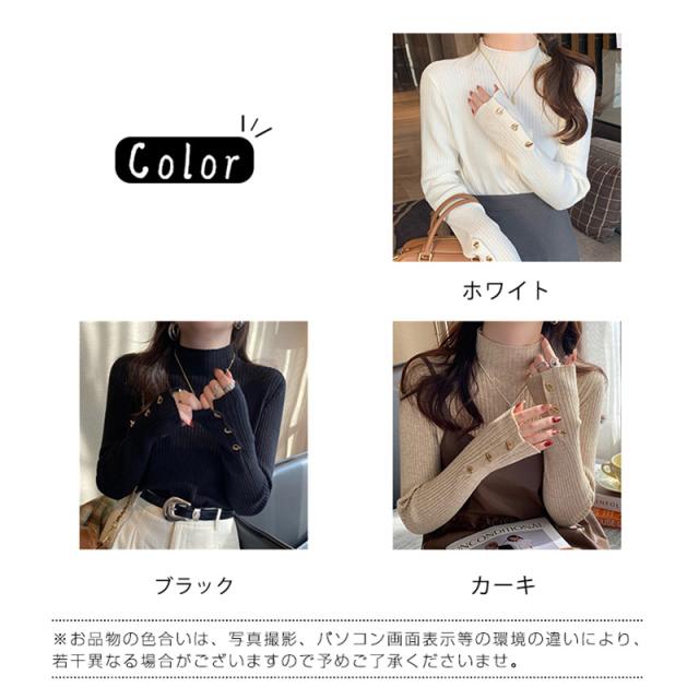 ニットセーター レディース ニットカットソー 長袖 インナー リブハイネック タートルネック トップス セーター リブ ハイネック