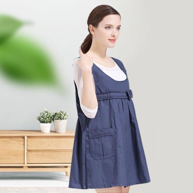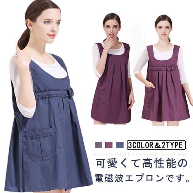 電磁波防止エプロン ベスト マタニティウェア ベスト リボン 電磁波防止ワンピース 電磁波カット 妊婦服 電磁波防止 ポケット付き 電磁波シールド