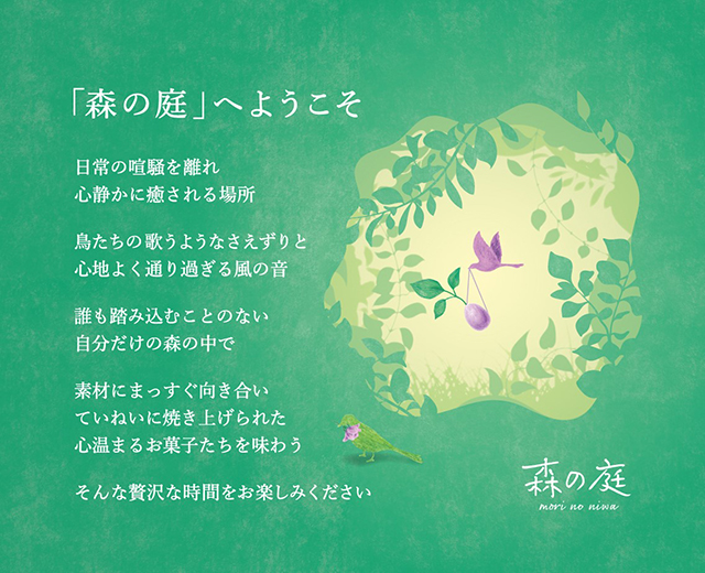 ・「非日常の森の庭で素朴なお菓子を味わう」がコンセプトの「森の庭」シリーズ。