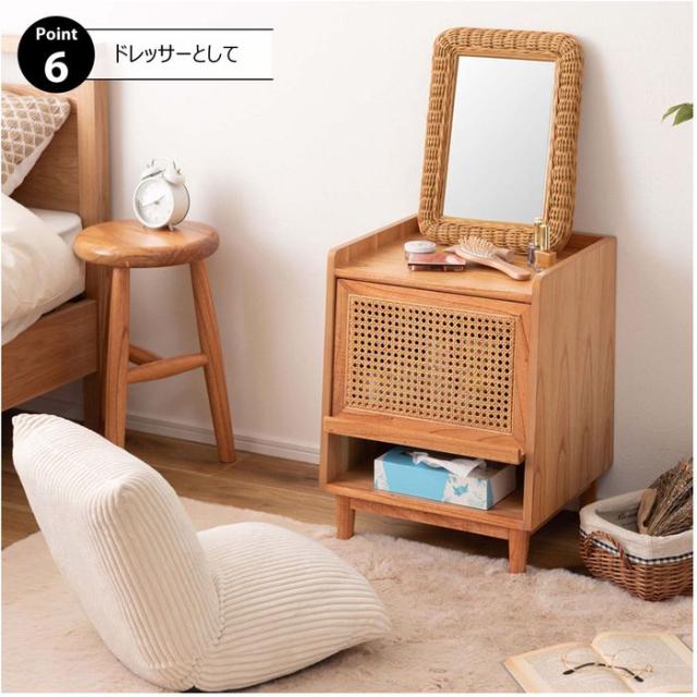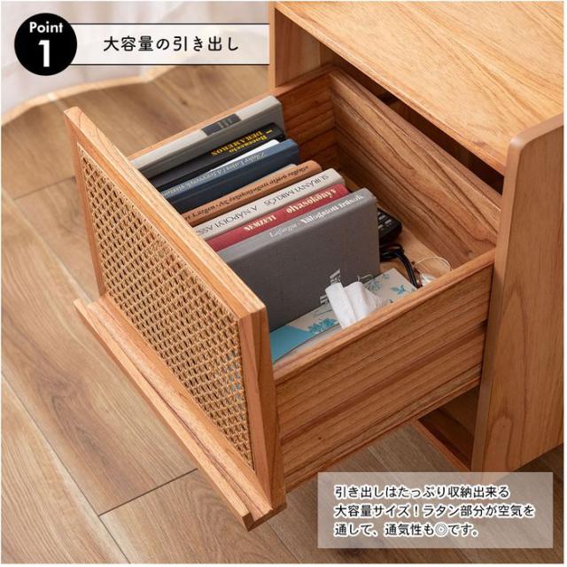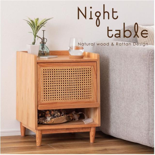 ナイトテーブル テーブル サイドテーブル おしゃれ 木製 天然木 スリム 引き出し 収納付き ナチュラル 寝室 ベッドサイド 完成品 収納棚 ミニテーブル サイドチェスト シンプル コンパクト ラタン 籐