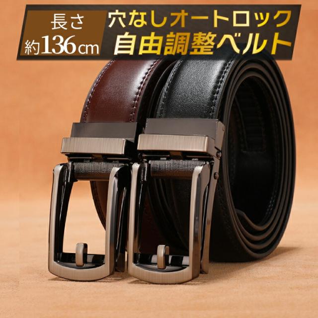 【0の日限定Pアップ!正午まで当日発送】ベルト 130cm メンズ 穴なし 無段階 PUレザー 革 オフィス カジュアル ビジネス スーツ オートロック 自動 誕生日 簡単調節 黒 かっこいい 調整 長め ぽっちゃり カット可能 シンプル スライド ワンタッチ 学生 ゴルフ