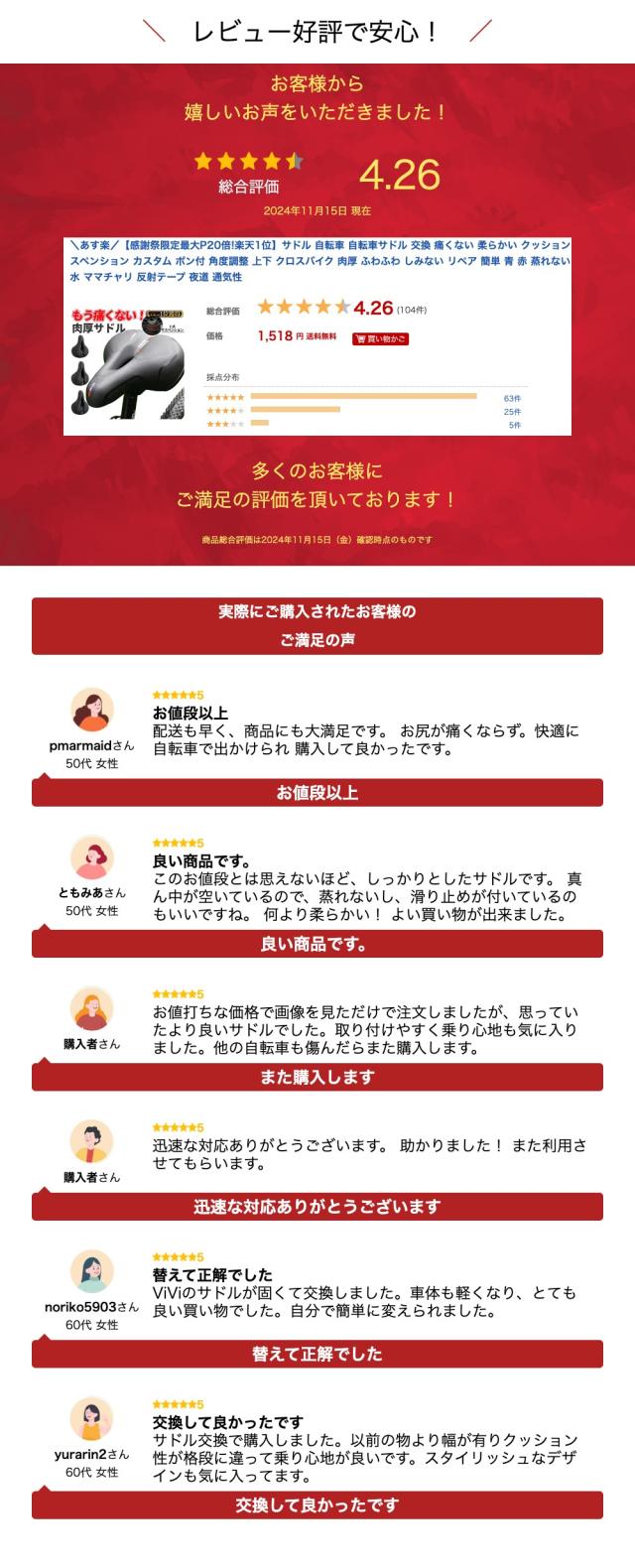 - 柔らかく、痔には良いく長距離?でも疲れないかな。