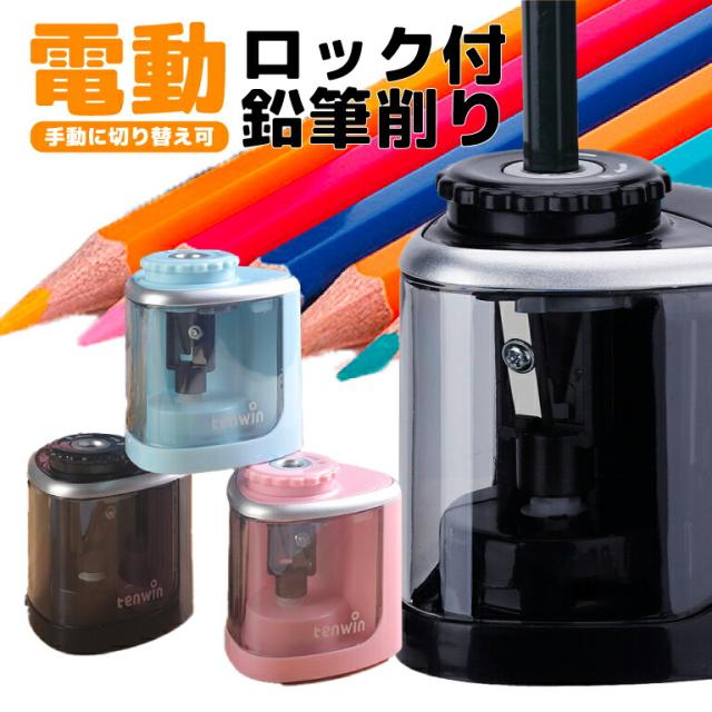 \\正午まで当日発送//鉛筆削り 電動 手動 電池式 切り替え可能 こども ミニ 持ち運び ロック付き おしゃれ オフィス 電動鉛筆削り 子供 コードレス 乾電池 コンパクト ピンク 青 黒 シンプル 軽い 移動