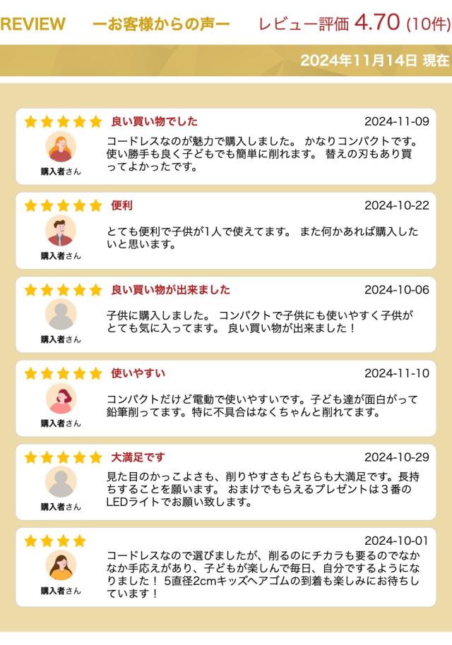 - 思ったより小さくて場所もとらずよかったです。 替刃もついていて助かります。