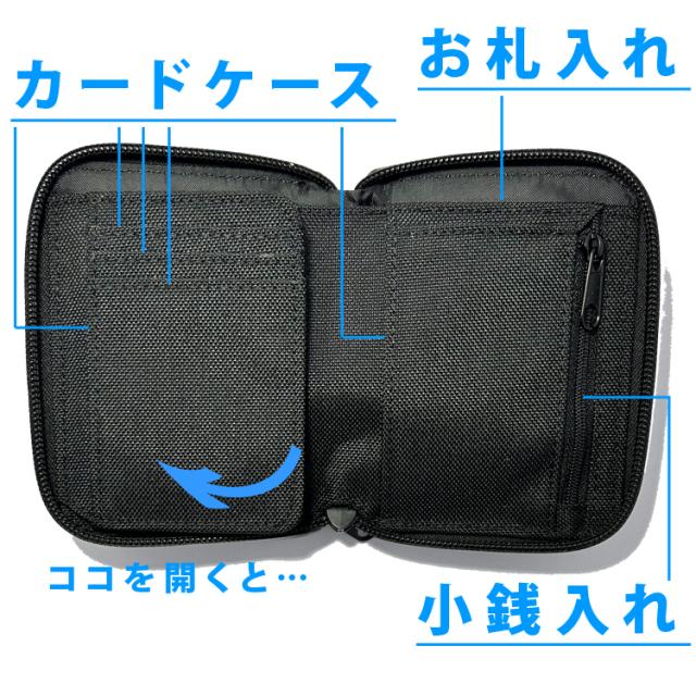 ラウンドジップ 二つ折り 財布 撥水 ラウンドファスナー 札入れ 小銭入れ カード収納 ウォレット 薄い 軽い 2つ折り ミドルウォレット カラビナ 止水ファスナー 3201-kmc