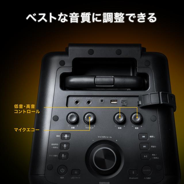 カラオケスピーカーとして利用したり、結婚式の2次会やパーティーなどでバックミュージックと共にアナウンスを流したりできます。