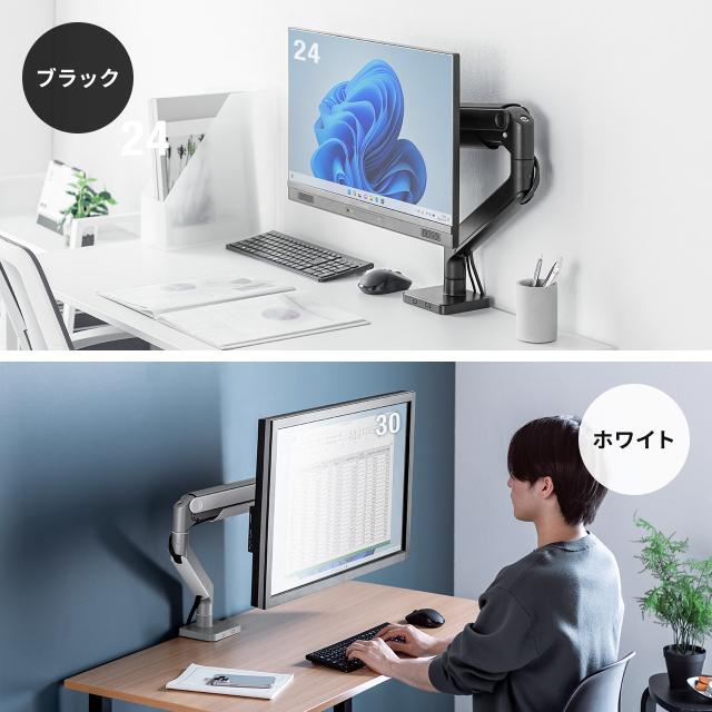 モニターアーム 32インチ対応 高耐荷重 最大49インチ対応 2〜20kg対応 クランプ ブラック ホワイト[100-LAC007]