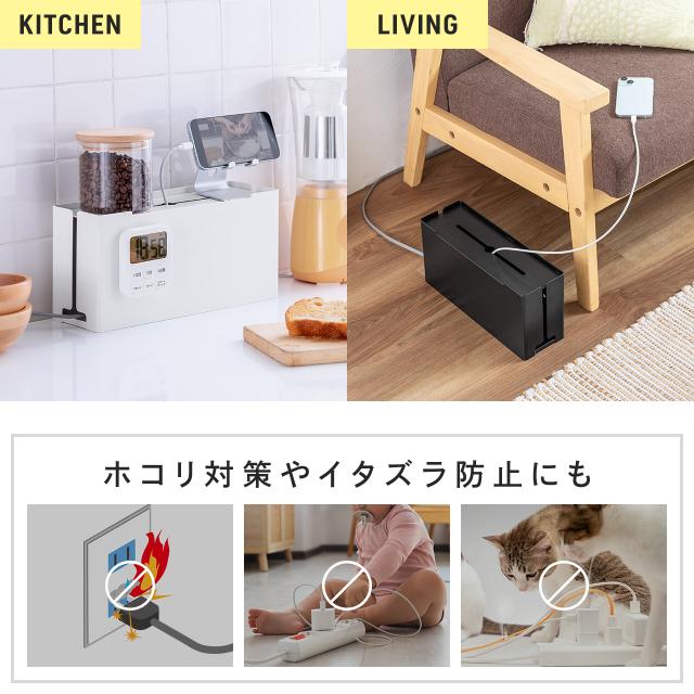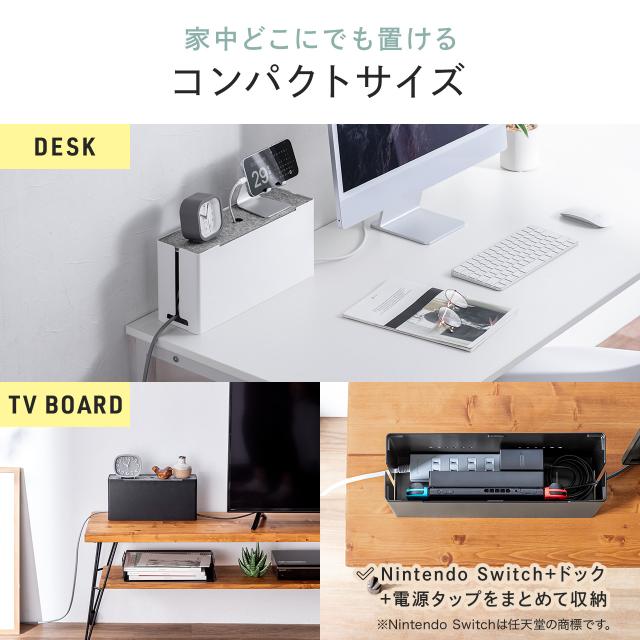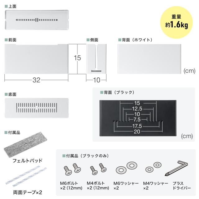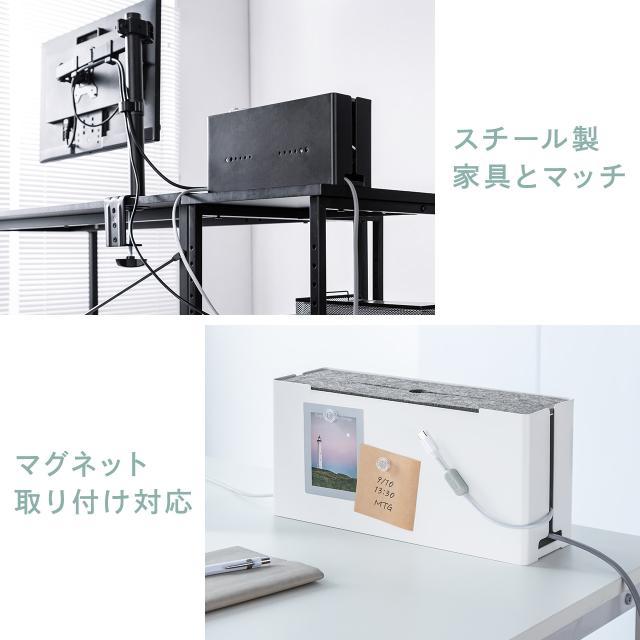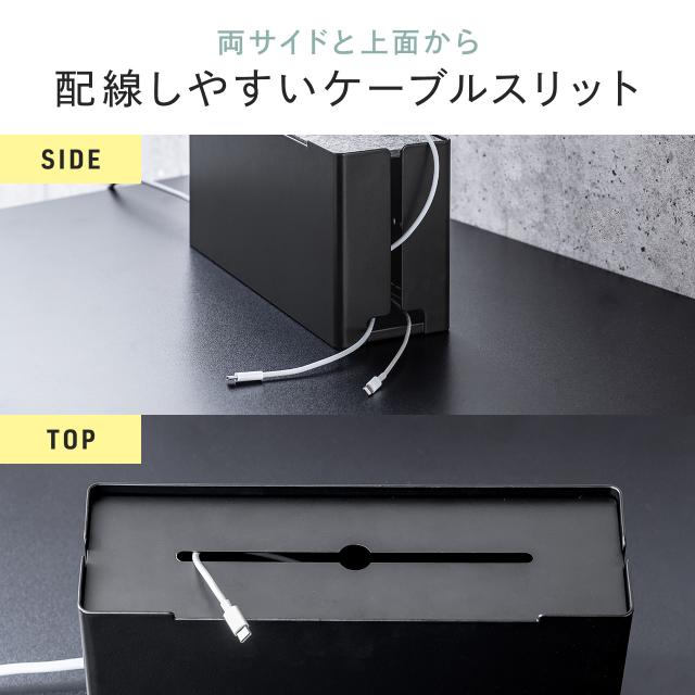 ケーブルボックス 電源まわり 目隠しボックス タップ収納ボックス ケーブル収納 幅32cm 充電ステーション スチール製 Switch収納 完成品 VESA対応 ブラック ホワイト[200-CB070]