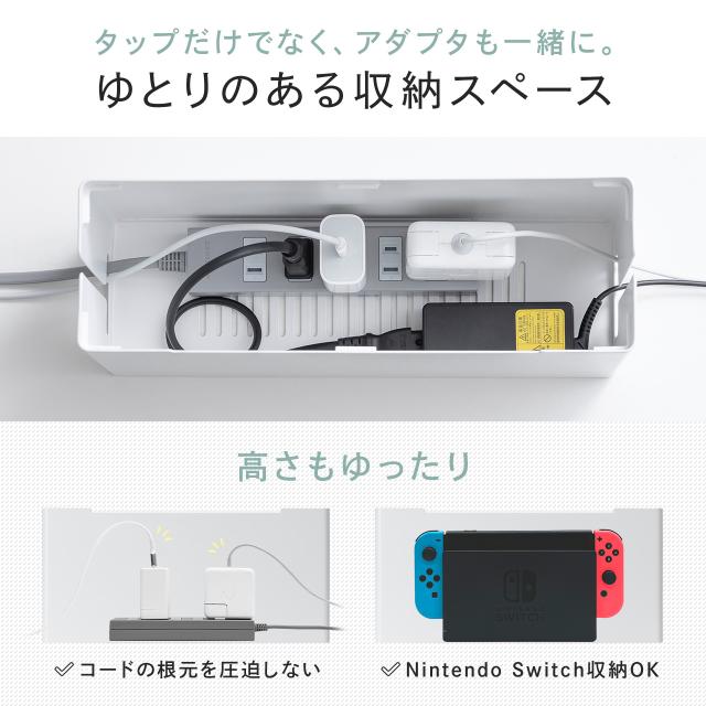 ●高さのある収納スペースなので、タップや充電器だけでなく、Nintendo Switchの収納もできます。