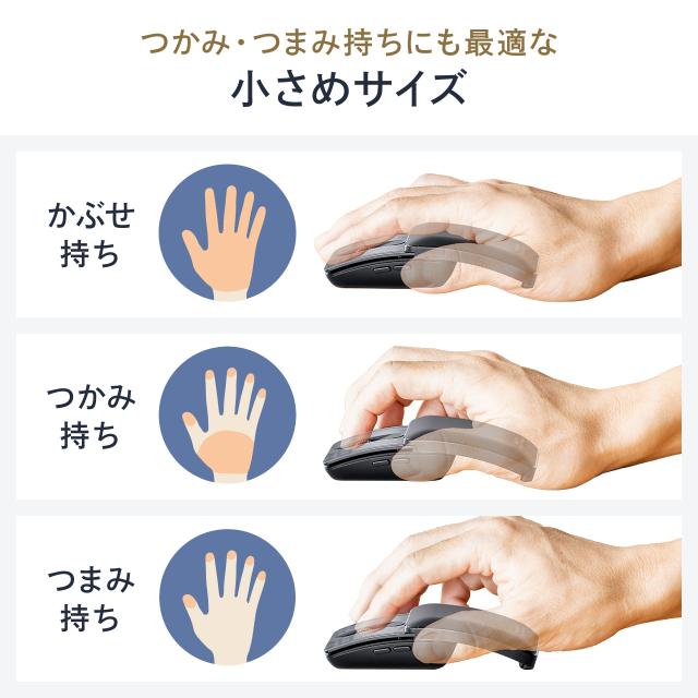 ●スライドカバーを閉じることで小さくなる、持ち運びに便利なBluetoothマウスです。●カバーを閉じると奥行7cmと、クレジットカード(8.5cm)より小さくなります。厚さも約2.7cmで超薄型です。