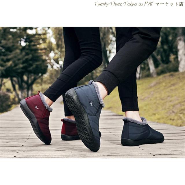 送料無料 スノーブーツ 防寒靴 撥水防水 防滑 保温 裏起毛 ファー付き 雪靴 スノーシューズ ウィンターブーツ ショートブーツ 男女兼用 冬用