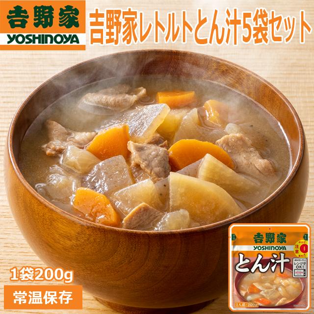 吉野家レトルトとん汁5袋セット(豚汁 200gx5 常温保存 レンジ 湯せん 常温 味噌汁 朝食 ランチ 夕飯 おかず お惣菜 おつまみ 夜食)