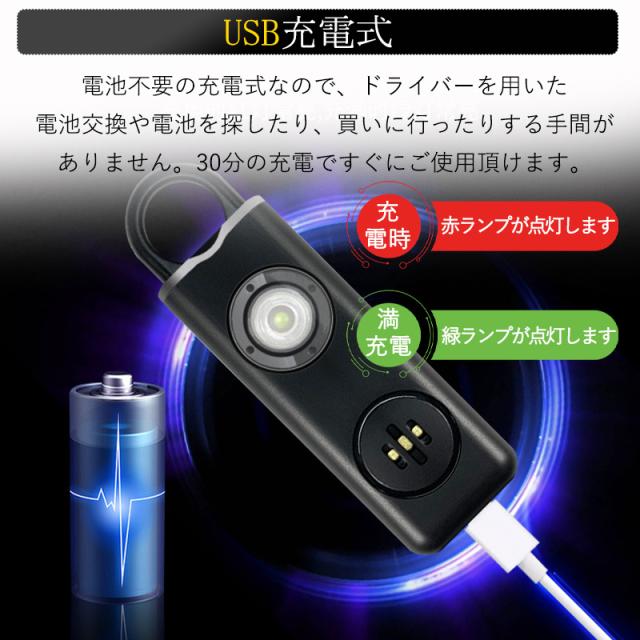 防犯ブザー 子ども 女性 防犯アラーム 大人 130dB 大音量 LEDライト付き USB充電 懐中電灯 小学生 男の子 女の子