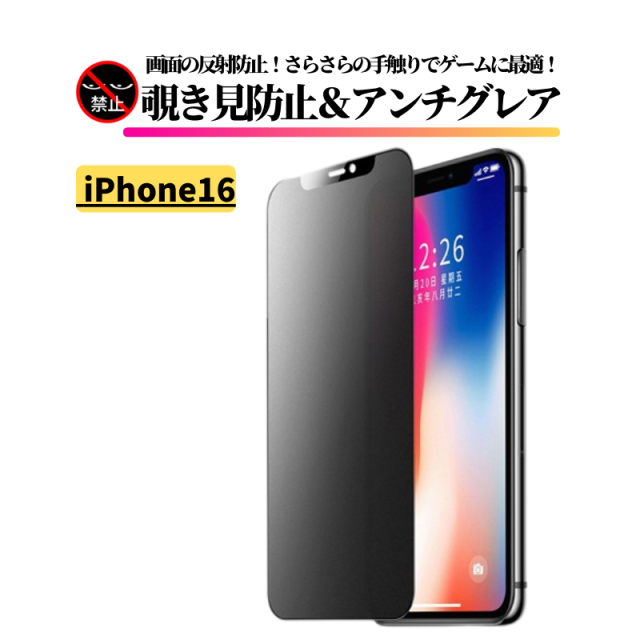 iPhone 16 覗き見防止 アンチグレア 強化ガラス フィルム ガラスフィルム 非光沢 さらさら マット 反射防止 指紋防止 硬度9H 飛散防止 全面保護 フルカバー iphone アイフォン iPhone16 シックスティン