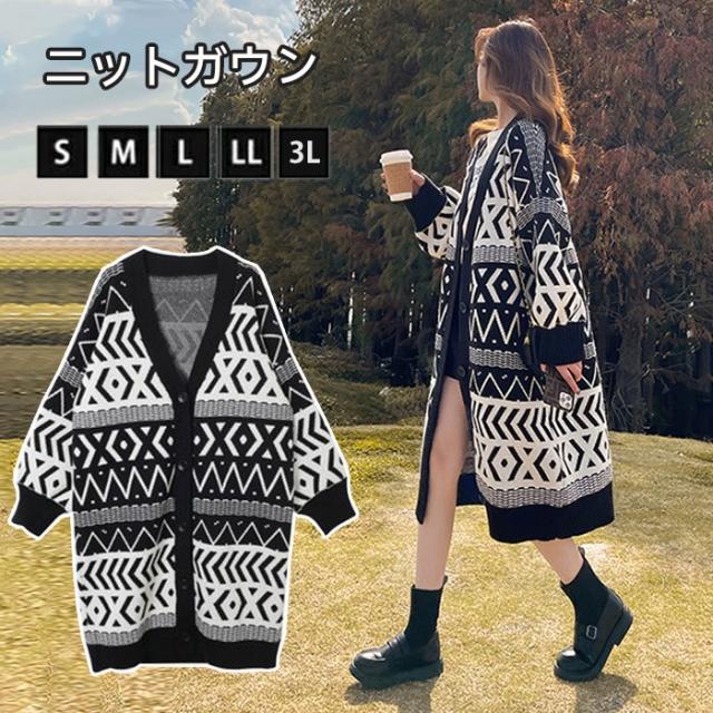 ニットガウン ニットカーディガン ロング レディース 長袖ガウン カーディガン 長袖 厚手 ロングカーディガン ポケット付き コーディガン ライトアウター 羽織り 大きいサイズ 春 秋冬 体型カバー ブラック ゆったり カジュアル xz192d7d7xq xz192d7