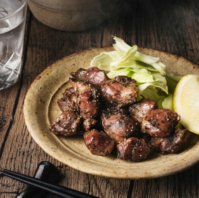 鶏の砂肝を直火で焼き上げ炭火で燻し、黒胡椒とにんにくなどで味付けをしました。常温保存が可能で、レンジか湯煎で温めて簡単にお召し上がりいただけます。黒胡椒のスパイシーさとにんにくの香りが食欲をそそり、とくに酒のおつまみにおすすめの一品です