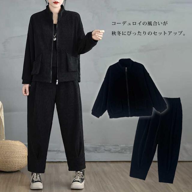 大きいサイズ レディース セットアップ ジャケット パンツ ブルゾン テーパード 上下セット 長袖 冬 (1486066)