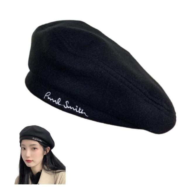 Weuiean ベレー帽 画家帽 レディース ウール混 キャップ レター刺繍帽子 可愛い レトロ 調節可能 カジュアル 通勤 通学 LZB-123(ブラ