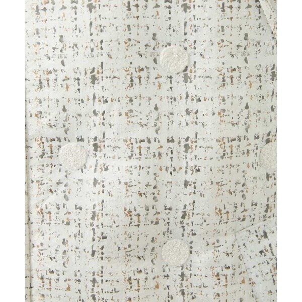 プリントのダウンコートです。ステッチが無いので、カジュアル過ぎない印象に仕上げています。水玉柄の刺繍を施し、中のダウンも一緒に止めることで全体に行き渡り暖かく着られる仕様に。袖口は縫い代ゴムを入れて、後ろ裾はラウンドさせヒップにかかる長さにし、冬の寒さにも身体を暖かく守ってくれます。