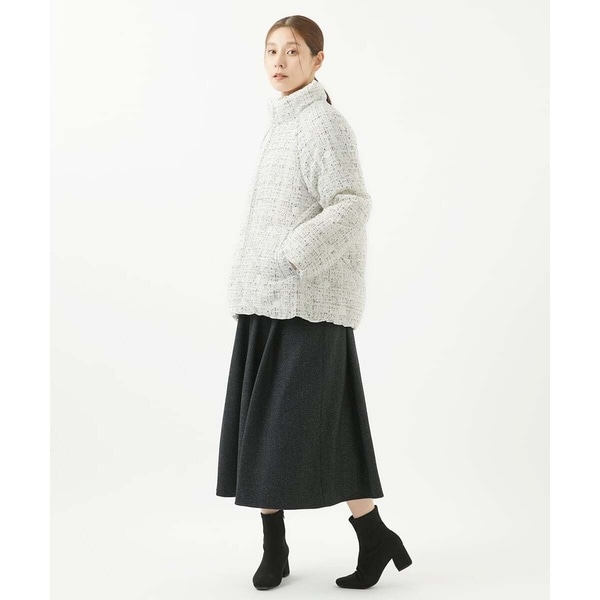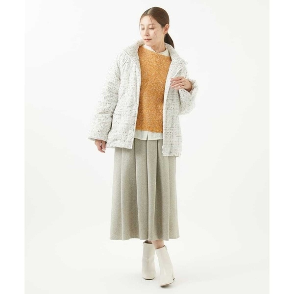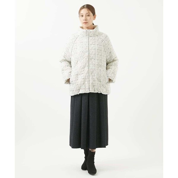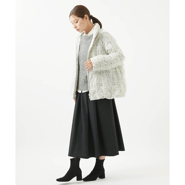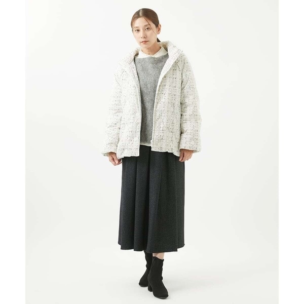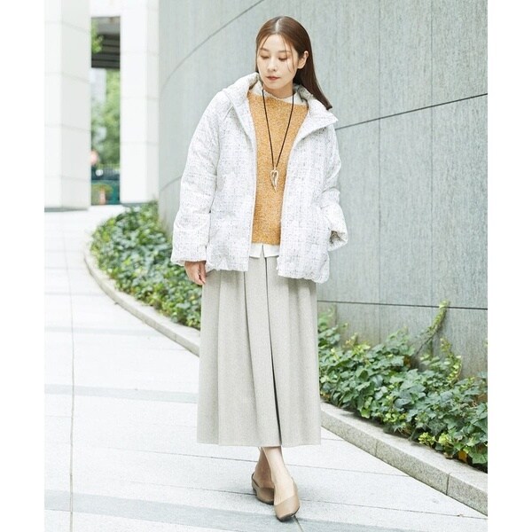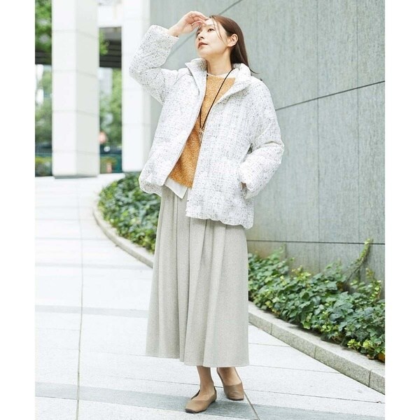 普段のコーディネートにサクッと羽織れる、馴染みのいいダウンコートです。程よい丈感でスカートにもパンツにも相性抜群。カジュアルすぎないのできれい目なスタイリングに合わせるのもおすすめ。お出かけやお仕事着にも使えそうなアイテムです。