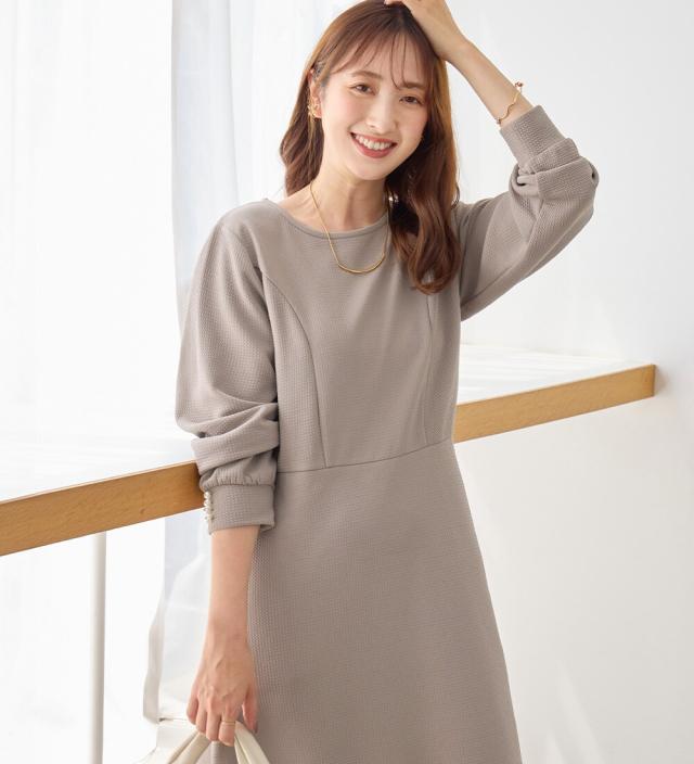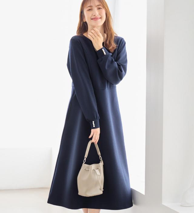 ・女性らしい上品な印象のAラインワンピースで、お洒落に体型カバー