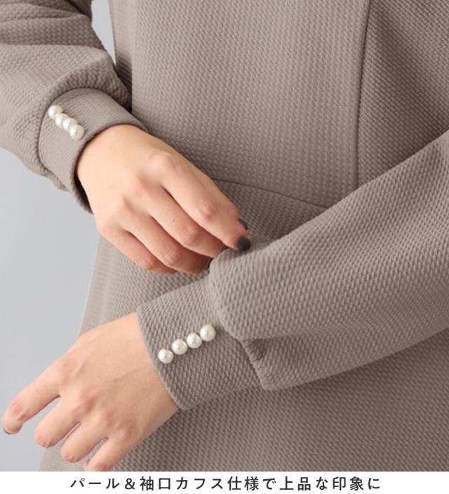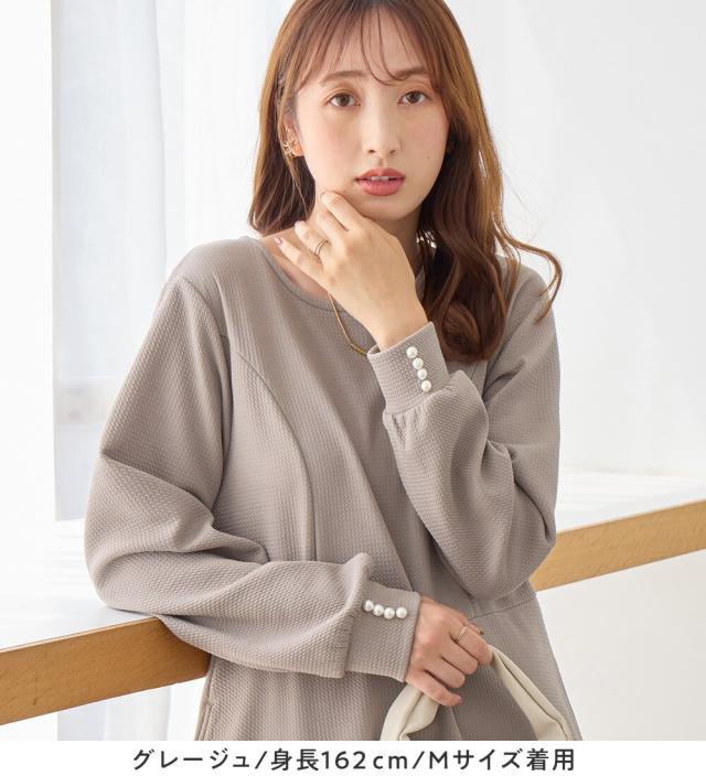・ぽわんとした袖&パール調ボタンで手元が可愛く演出。