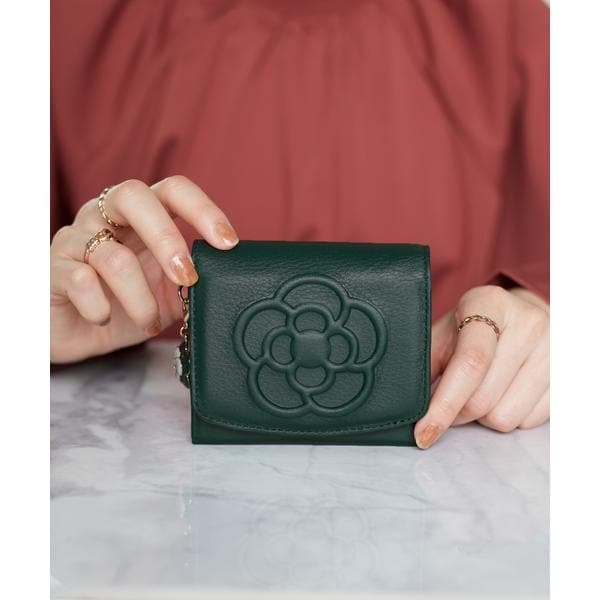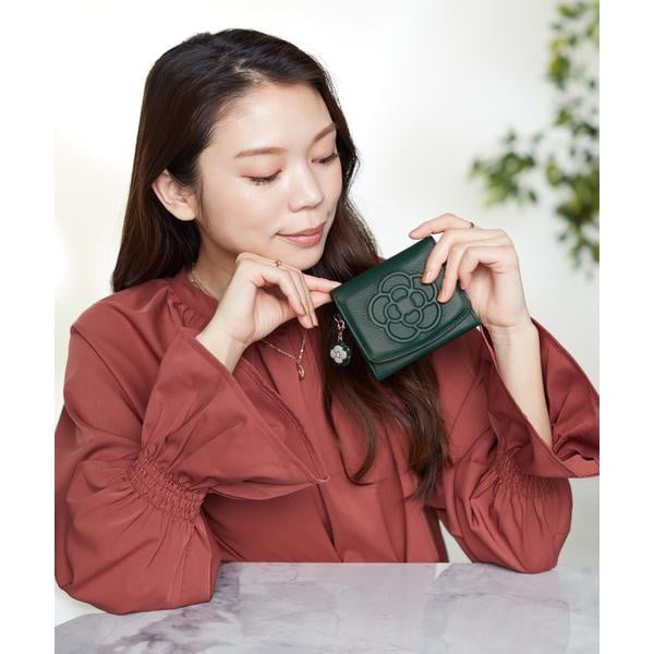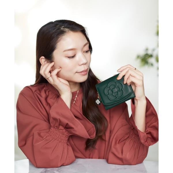 手なじみの良いソフトスムースに、カメリアを浮き出す加工を施したワッフルシリーズの二つ折り財布。小さなバッグやポケットにスッポリ収まるミニサイズながら、お札入れがしっかり2ヶ所あり、お札やポイントカードなどを分けて入れられて便利です。また、ボタン式の小銭入れはBOX式なので、出し入れが楽々。内装のカメリアとCマークのモノグラム柄もポイント。【製品寸法】F/M : 縦:9.5, 横:11, マチ:2.5【素材】牛革※生産時期によって原産国が変わります。※生産時期によって原産国が変わります。【メーカーサイズ寸法(実寸)】F/M : 底マチ:2.5cm, よこ:11cm