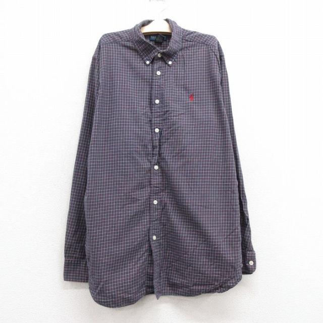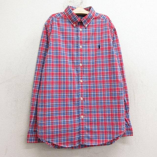 【商品名】 古着 トミーヒルフィガー 長袖 ブランド シャツ キッズ ボーイズ 子供服 90年代 90s ワンポイントロゴ コットン ノーカラー 赤他 チェック