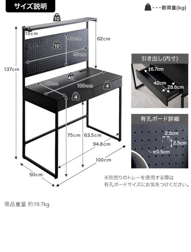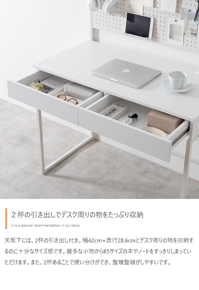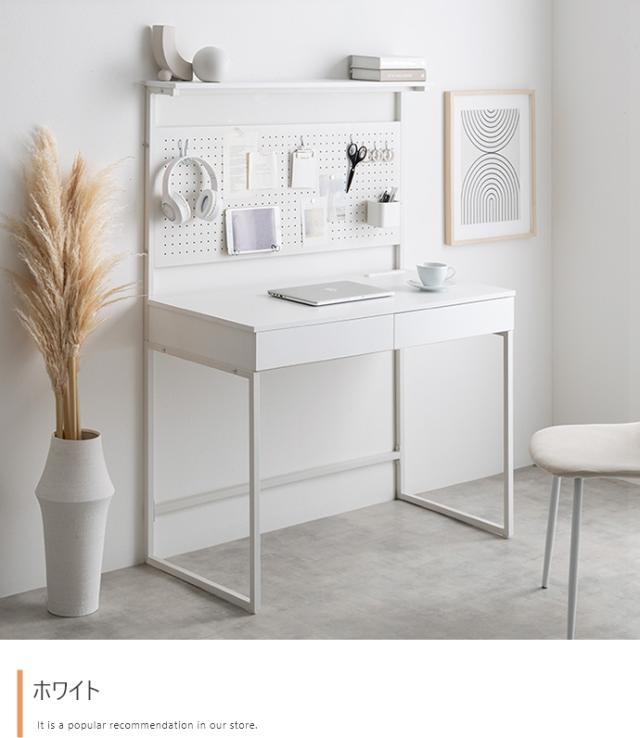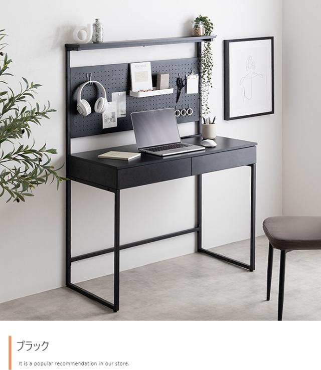 パソコンデスク 机 幅100cm 有孔ボード・引き出し付きデスク Finley(フィンレー) 2色対応 PCデスク 学習机 ワークデスク コンセント付き 卓上ラック 省スペース 壁面収納 シンプル おしゃれ 在宅ワーク