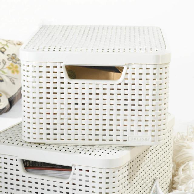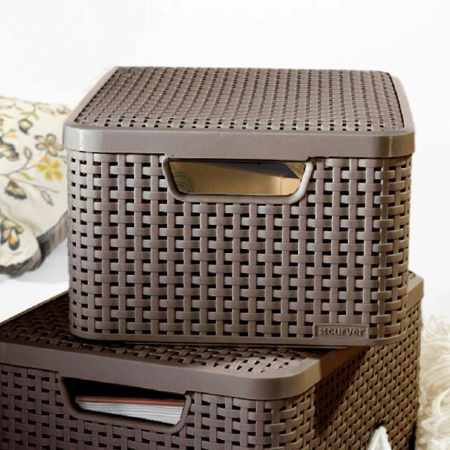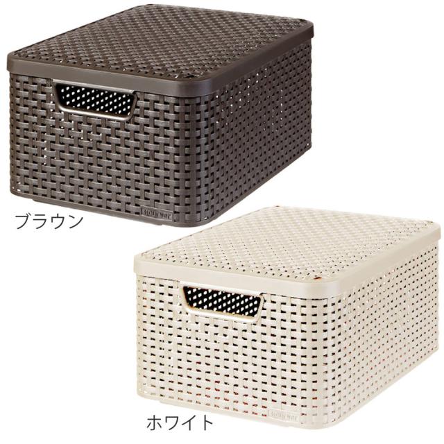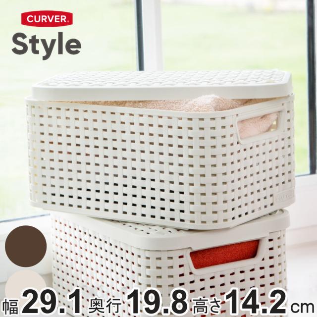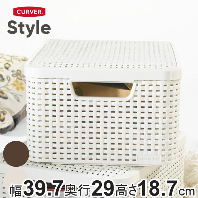 バスケット CURVER スタイル 収納ボックス M 収納 ( 幅39.7×奥行29×高さ18.7cm ラタン風 かご カゴ 収納ケース 通気性 小物 小物入れ 小物収納 ふた付き 小物ケース キッチン ランドリー クローゼット 整理整頓 スタッキング )