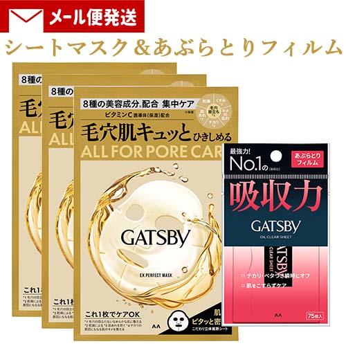 【1000円ポッキリ】ギャツビー(GATSBY) EXパーフェクトマスク 1枚入(3個)×あぶらとりフィルム 75枚入 メンズスキンケア マンダム(mandom)【メール便送料込】