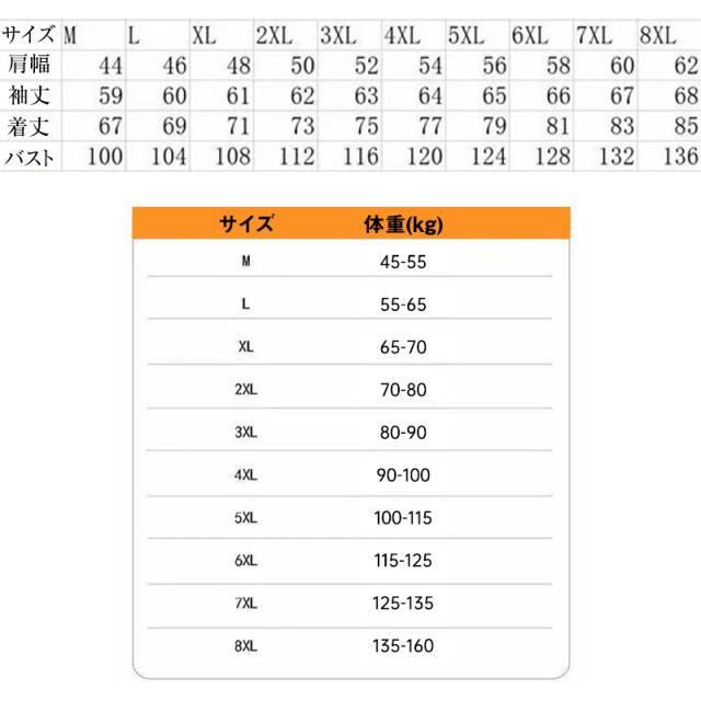 8XL【着丈85cm/バスト136cm/肩幅62cm/袖丈68cm】