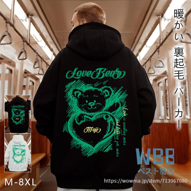 メンズ パーカー 秋冬 大きいサイズ ファッション 裏起毛パーカー フード付き ストリート系 ゆったり くま クマ トップス M-8XL