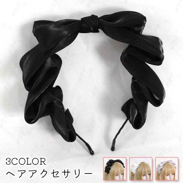 h146#カチューシャ レディース 当日発送 3color ヘアアクセサリー 幅広 リボン 大きめ 無地 ヘアバンド 太め おしゃれ かわいい 髪飾り ヘアアレンジ ロリータ