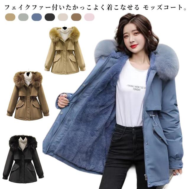 全7色 モッズコート レディース 冬 アウター コート 裏ボア ミリタリーコート ジャケット ボアコート フェイクファー ファーコート フード付き 中綿コート モッズ 大きいサイズ 防寒 暖かい 秋冬 送料無料