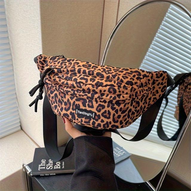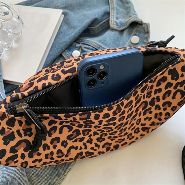 ファッション レオパードプリント ウエストバッグ、シンプルなストリートウェア ファニーパック、トレンディなクロスボディ チェストバッグ スポーツ バムバッグ ファニーパック