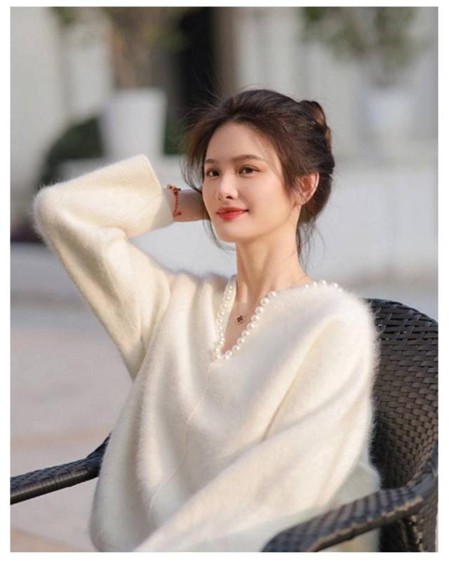 | 華奢な女性らしさを演出するVネックニット。 もこもこ素材を使用、柔らかで暖かい。 襟はパール付きなので女性らしい印象に、上品に着こなせます。 パンツでもスカートでも、合わせやすく、ロングシーズン大活躍間違いなし。 素材が着心地良く、これからの季節に着用しやすいのも嬉しいポイント。 | |
