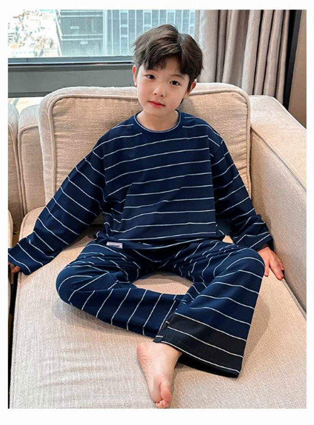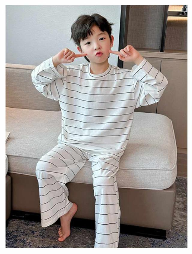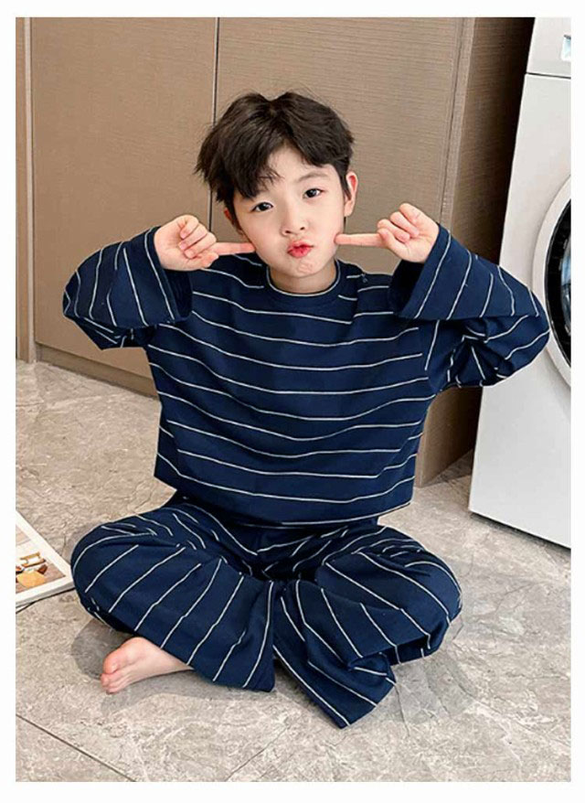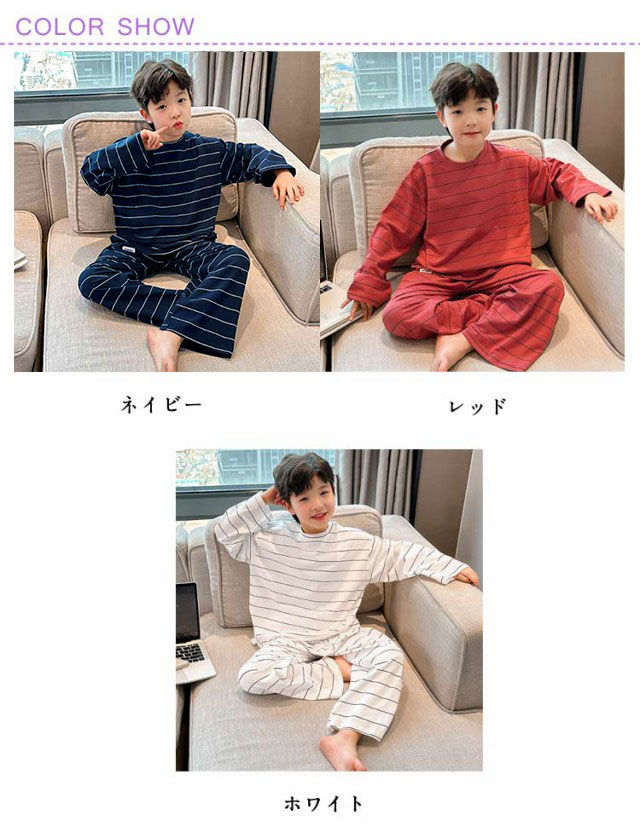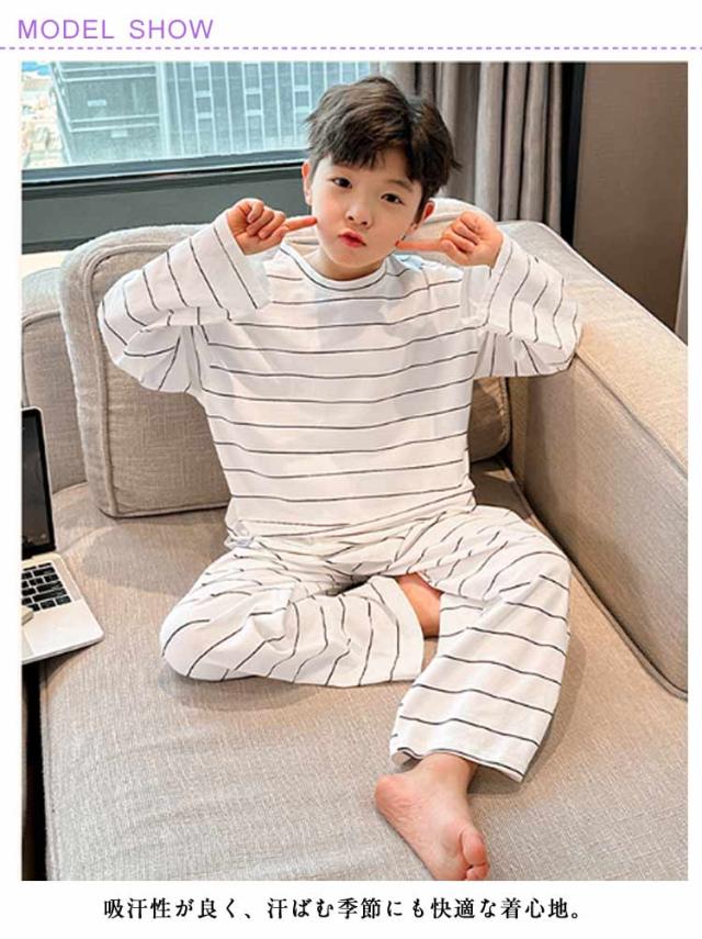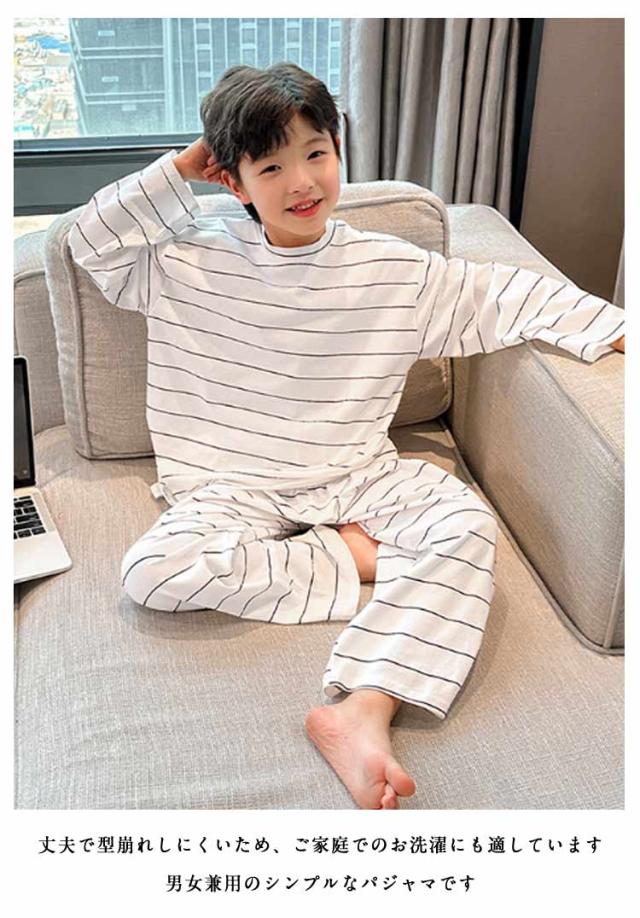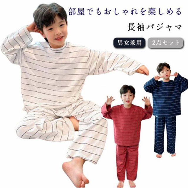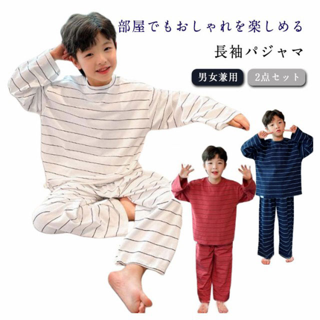 ボーイズ 長袖パジャマ 子供服 寝巻き キッズ ボーダー 男の子 女の子 ルームウェア セットアップ 長袖ルームウェア 上下セット 2点セット パジャマ トップス 長パンツ 吸汗 部屋着 お泊り ジュニア 春秋冬 入園準備 110 120 130 140 150 160 170 送料無料