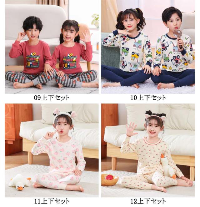 送料無料 ルームウェア キッズ ベビー 子供 パジャマ 長袖Tシャツ 長ズボン 上下セット 長袖パジャマ 男の子 女の子 こども 綿 ジュニア 春 秋 冬 コットン 入園グッズ 入園準備 ボーイズ ガールズ 子供服 寝巻き 部屋着 総柄 90 100 110 120 130 140 150 160cm