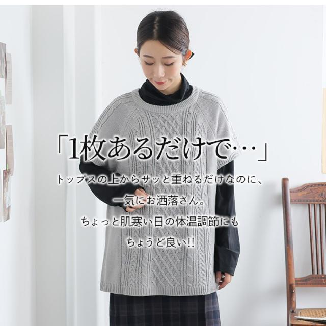 気になる部分がすっぽり隠せるラグランケーブルベスト体型別コメント