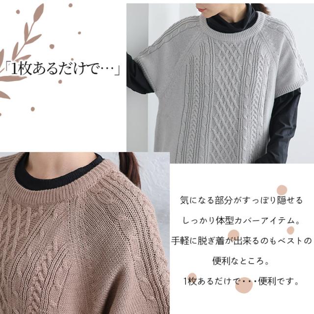 新作 大きいサイズ レディース ベスト | ラグラン ケーブル ベスト [861553] LL 3L 4L 5L