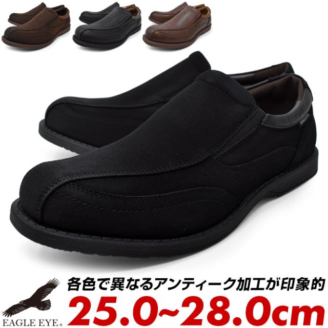 イーグルアイ メンズ サイドエラスティックシューズ スリッポン ローカット 防水 アンティーク加工 スエード調 スウェード スウエード フェイクレザー eagle eye 歩きやすい 履きやすい 疲れない 痛くない 滑らない 幅広 ポイント消化
