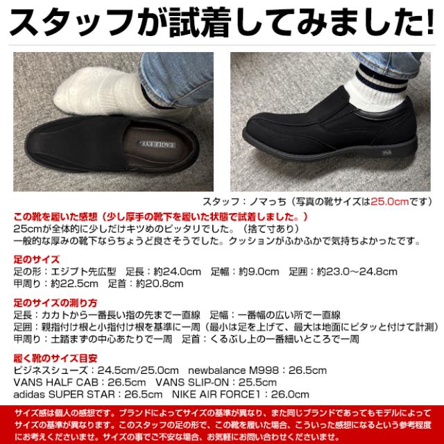 普段着用するビジネスシューズ(26.5cm 3E)と同じサイズの26.5cmを選びました。