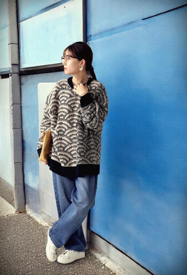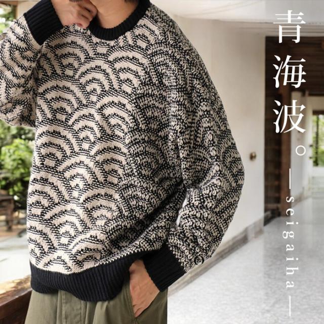 日常を彩る和柄デザイン『青海波柄ニットプルオーバー』