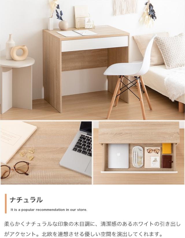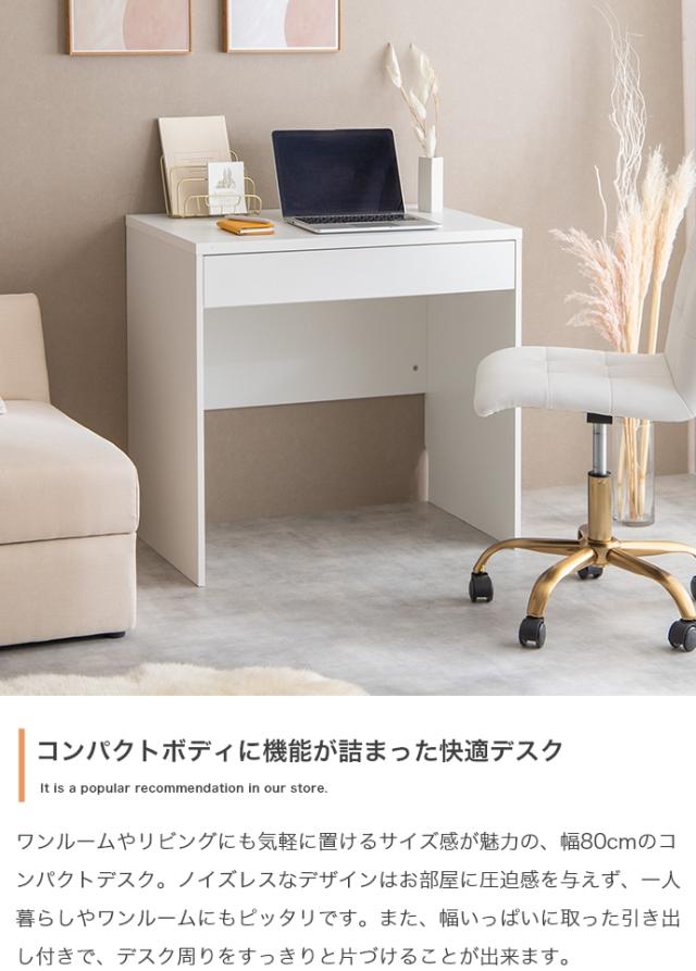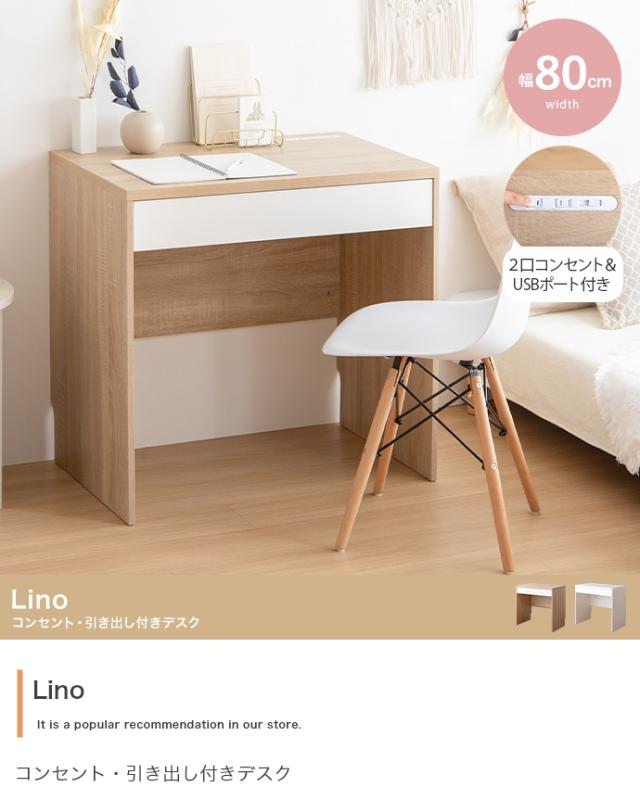 パソコンデスク 机 幅80cm コンセント・引き出し付きデスク Lino(リノ) 2色対応 学習机 PCデスク 引き出し ワークデスク 2口コンセント 省スペース 壁面収納 シンプル ドレッサー おしゃれ 1人暮らし