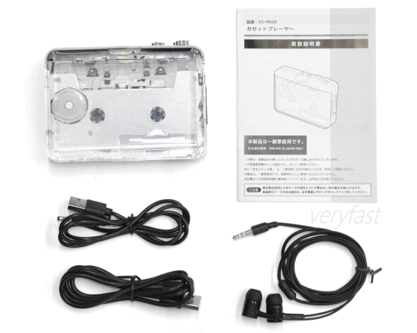 単三形アルカリ乾電池2本(別売)またはUSB電源に対応しています。カセットを入れなおすことなくオートリバース機能でA面B面自動切替。ステレオイヤホンが付属しているので接続して音楽を聴く事ができます。カバンにいれてもかさばらない手のひらサイズなので持ち運びにも便利です。■品名:カセットプレーヤー■品番VS-M020■本体サイズ約W115×D30×H85mm■本体重量約170g■電源:単三アルカリ乾電池2本(別売)、DC電源端子(DC3V 500mA)、USB Type-C(DC3V 500mA)■連続使用時間約1.5〜2時間(単三アルカリ乾電池使用時)■セット内容:本体、USBケーブル、電源ケーブル、ステレオイヤホン(Φ3.5mm)■生産国:中国■本製品では使用できないテープ:ハイポジションテープ、エンドレステープ、メタルポジションテープ、C-90(90分テープ)以上のテープ※連続使用時間は使用環境や使用電池により異なります。本製品にスピーカーはありませんのでイヤホンをご使用下さい。製品本体に録音機能は搭載しておりません。