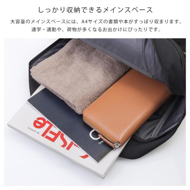 大容量のメインスペースはA4サイズの書類や本がすっぽり収まります。